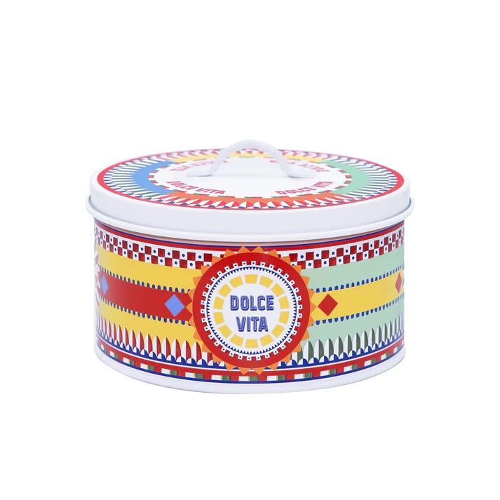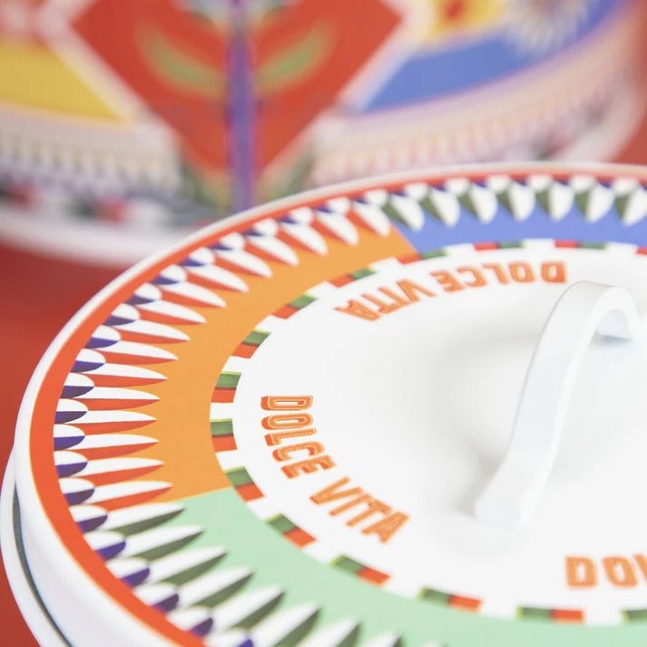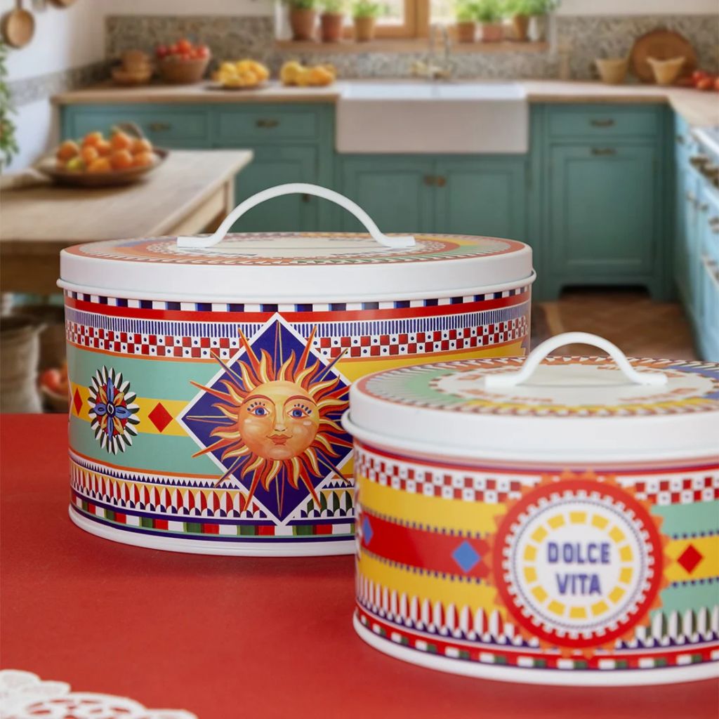 MEDIUM CAKE BOX from the "Dolce Vita" collection, a tribute to the natural elegance of Italian style, bringing a touch of la dolce vita into your home. A design that conveys the essence of the Mediterranean through its vibrant colors and decorations, an authentic expression of the warmth and beauty of Mediterranean living.