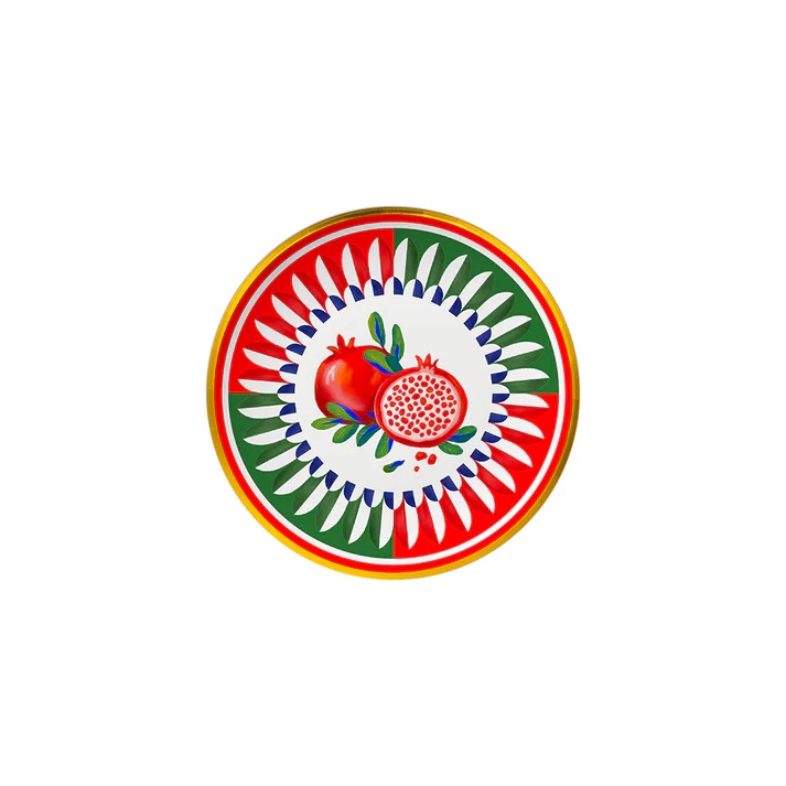 Set of 6 porcelain bread plates from the "Dolce Vita" collection, a tribute to the natural elegance of Italian style, bringing a touch of la dolce vita into your home. A design that conveys the essence of the Mediterranean through its vibrant colors and decorations, an authentic expression of the warmth and beauty of Mediterranean living. Ø 16 cm
